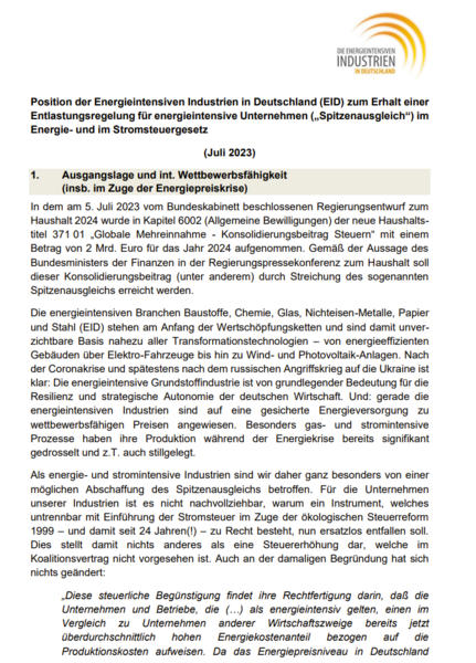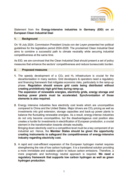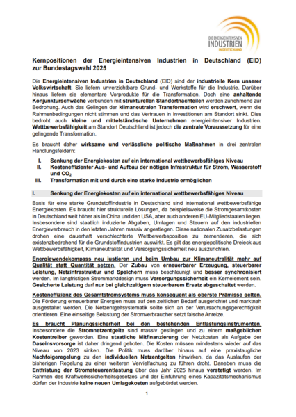 Zu relevanten politischen Themen veröffentlicht die Energieintensiven Industrien regelmäßig Stellungnahmen und Positionspapiere. Diese können Sie hier als Download abrufen.